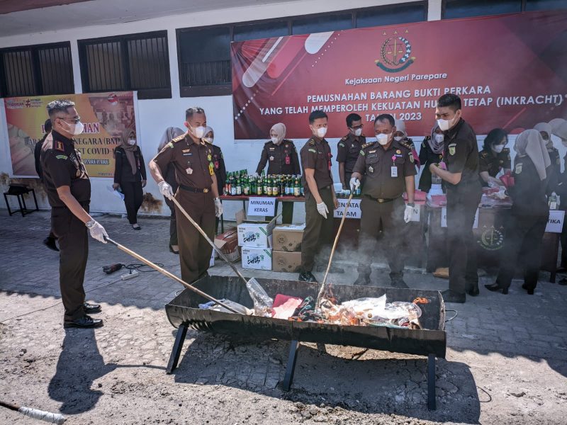 RILIS,PAREPARE -Kejaksaan Negeri (Kejari) Parepare memusnahkan Barang Bukti (BB) hasil sitaan di belakang Kantor Kejari Parepare, yang dihadiri Kepala Kejari Parepare Edi Dikdaya dan seluruh Kasi, serta Jaksa dan staf. Selasa (22/8)