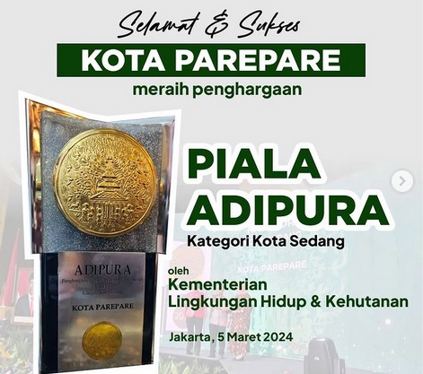 “Selamat, Kota Parepare kembali berhasil meraih piala penghargaan anugerah Adipura yang ke-15 dari Kementerian Lingkungan Hidup dan Kehutanan (KLHK) Republik Indonesia,” tulisnya.