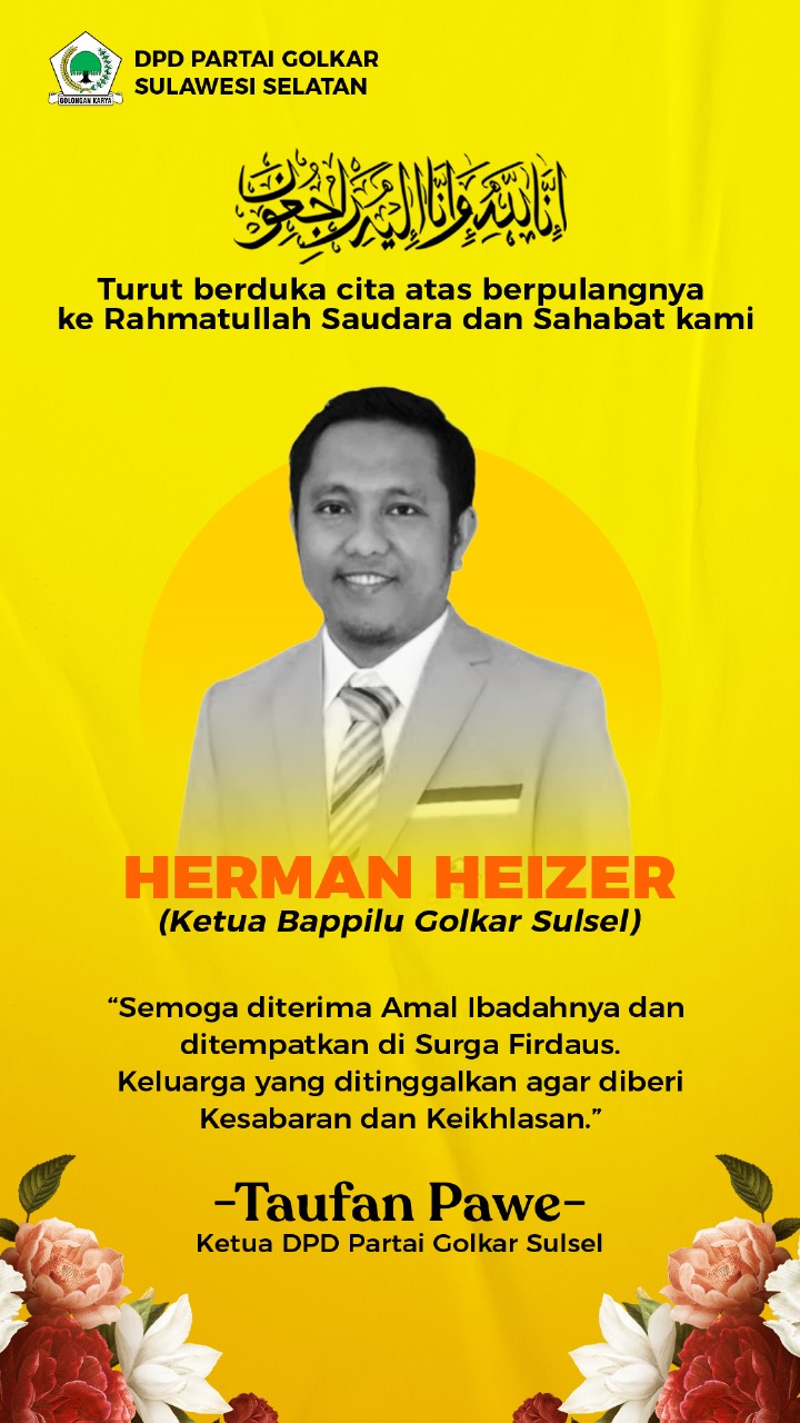 Baca Juga :Sebut Kader Terbaik Golkar, Taufan Pawe Melayat Rumah Duka Herman Heizer
