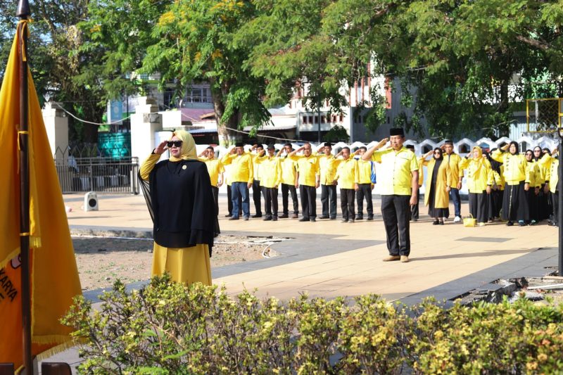 Diakhir sambutannya, Erna Rasyid Taufan mengajak seluruh peserta upacara untuk mendoakan ketua Bapilu Golkar Sulsel Herman Heizer yang Wafat Kamis (19/10/2023).