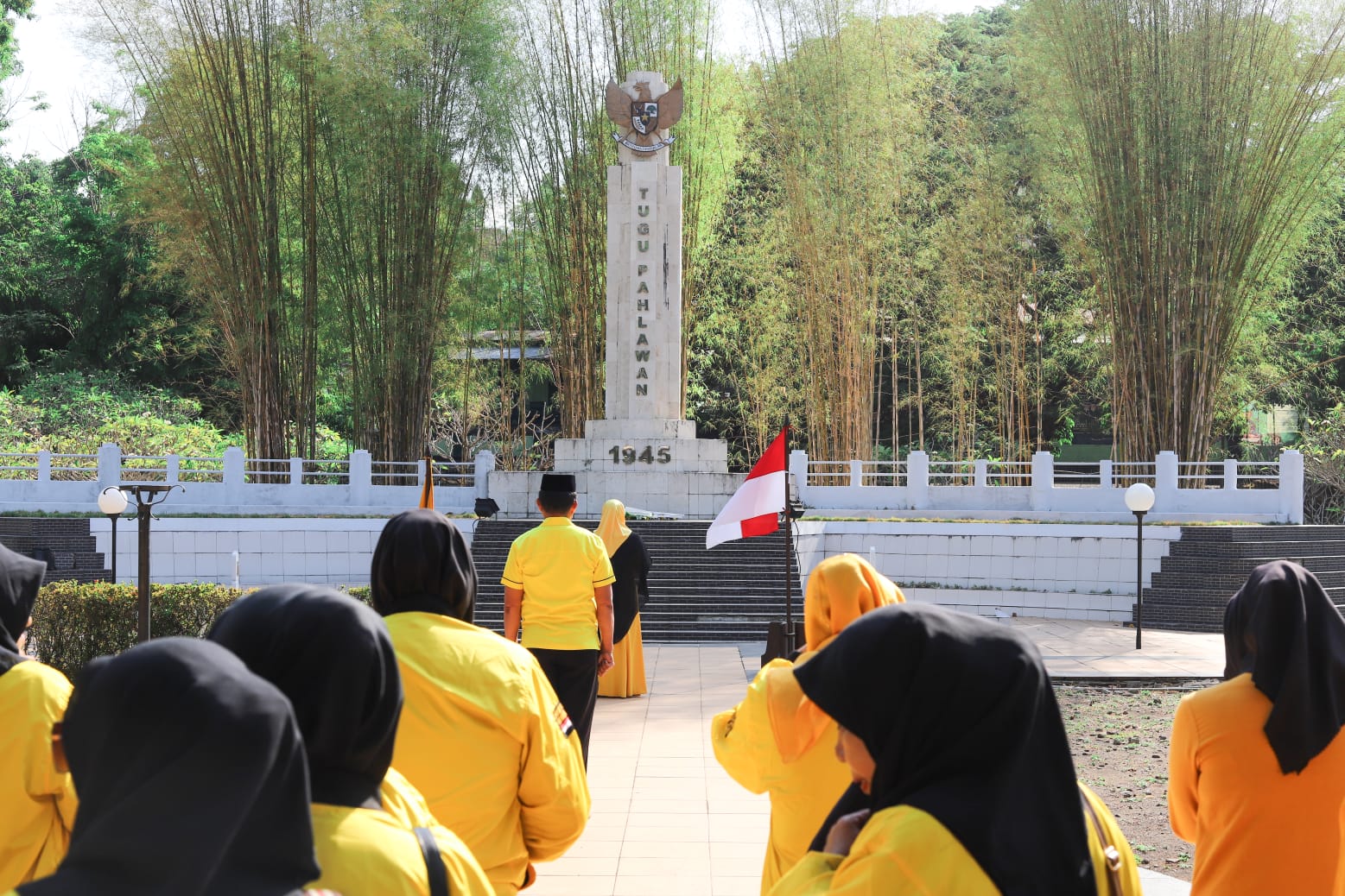 Usai melaksanakan upacara, Erna Rasyid meletakkan karangan bunga dan pembacaan doa di ikuti tabur bunga oleh seluruh peserta rombongan.